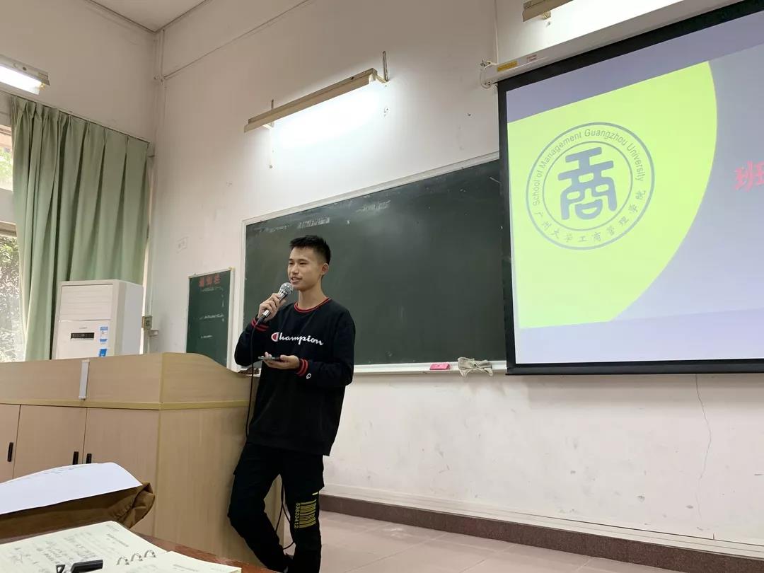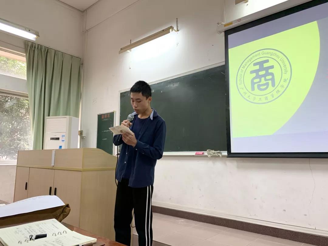 接下来,来自工商193班班长冯天龙与来自工商1910班的班长潘泽明在谢老师的鼓励下上台分享个人感受。班长冯天龙说当班长虽然难,有许多事情需要权衡利弊,但成功后会收获满满的成就感。他坚信,班长作为班级的领导核心,更应该以身作则,带好头,做好事。班长潘泽明则分享了他从一个没有任何学生干部经验,性格十分腼腆的学生转变到,“脸皮逐渐厚了起来”的班长的心路历程。最后,他激动地表达了对本班“更上一层楼”的整体发展态势的深深骄傲和自豪。谢老师借以上两位班长关于自我成长的经验,向我们呼吁:要做一个更加积极外向的人,重视每一次活动带给我们的锻炼。在心中树立起“不积跬步,无以至千里;不积小流,无以成江海”的定力与信仰。