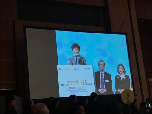 2018年11月28日晚,在香港会议展览中心会议厅,由英国特许房屋经理学会亚太分会(CIHAPB)、香港物业管理公司协会(HKAPMC)、香港房屋经理协会(HKIH)、香港大学专业进修学院(HKU SPACE)联合举办房屋专业联合宴会。香港特别行政区行政长官林郑月娥女士出席宴会并发表致辞,展望了香港未来房屋政策及发展愿景。英国特许房屋经理学会亚太分会(CIHAPB)、香港物业管理公司协会(HKAPMC)、香港房屋经理协会(HKIH)等主办单位领导及主要成员以及香港特区行政人员、行业组织和学术机构代表共计900多名各界人士出席宴会。