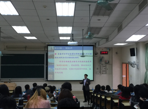 物业管理专业负责人陈德豪教授以“基于新技术应用的内地物业管理经营创新案例及启示”为题,讲解了目前内地物业服务企业依托互联网技术在社区商务生态圈打造、智慧社区O2O应用、物联网远程监控应用等方面的创新成果、案例与启示;接着,香港理工大学许智文教授为大家带来了题为“Hong Kong Real Estate Market”(香港房地产市场发展动态)的学术讲座。讲座现场,互动频繁,提问不断,交流热烈,同学们对两地房地产和物业管理市场发展动态表现出浓烈的兴趣。