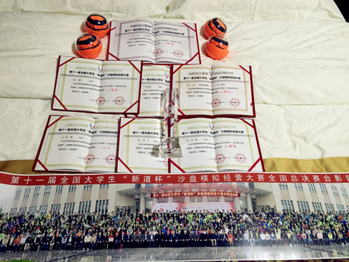 第十一届全国大学生"新道杯"沙盘模拟经营大赛全国总决赛由中国高等教育学会主办、西安培华学院承办,参赛队伍从全国1000多所高校选拔出108支队伍参赛,我校代表队作为广东省代表队参加了此次大赛。